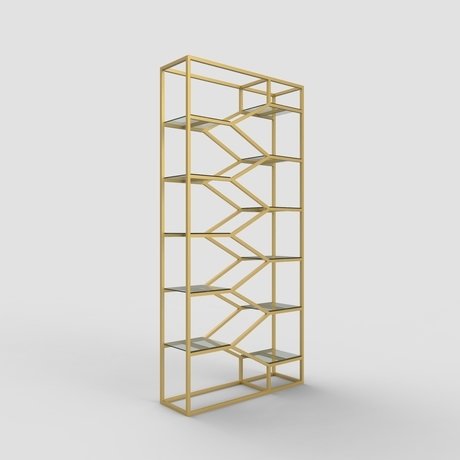 Стильный металлический стеллаж Aurora с геометрическим дизайном от студии мебели Decor Pronto. Добавляет динамики и сложности пространству, подходит для зонирования помещений. Этот стеллаж станет прекрасным интерьерным акцентом в пространстве. Выполнен из крепкого металлического профиля 20х20х2 мм. Изделие покрыто порошковой краской, которая наносится методом запекания, имеет высокие показатели стойкости к истиранию, повреждениям, выцветанию и прослужит долгие годы. Полки выполнены из зеркального полотна.