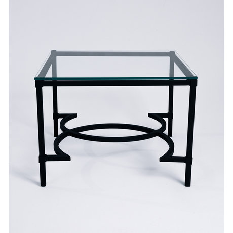Стол кофейный Стефан, основание металлическое глубокоматового черного цвета, столешница - каленое стекло, полированная кромка.