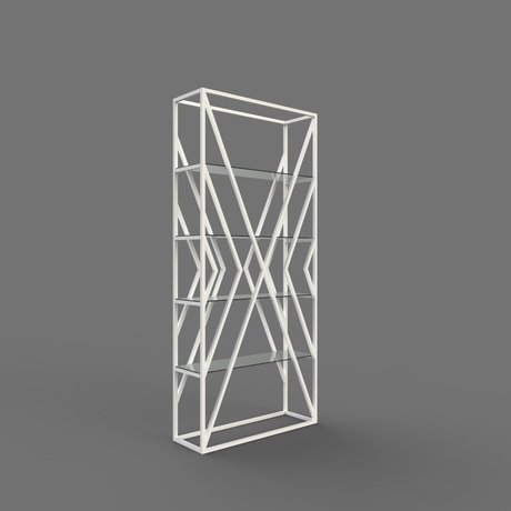 Невероятно стильный и необычный металлический стеллаж Marsel. Очень органичный и вместительный. Легкая конфигурация и продуманный дизайн этого стеллажа максимально гармонично впишутся в современный интерьер. Выполнен из крепкого металлического профиля 20х20х2 мм. Изделие покрыто порошковой краской, которая наносится методом запекания, имеет высокие показатели стойкости к истиранию, повреждениям, выцветанию и прослужит долгие годы. Полки выполнены из 6 мм закаленного стекла.