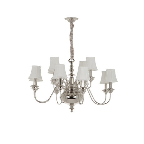 Металлическое основание цвета никель, тканевые абажуры белого цвета