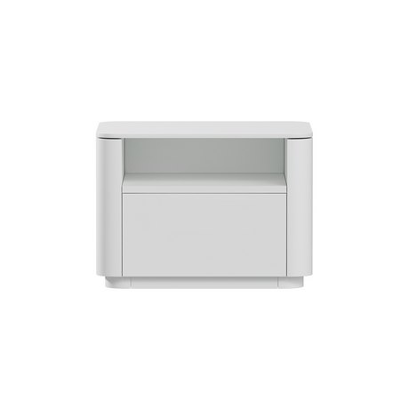 Ищете компактное и стильное решение для хранения мелочей у кровати? Прикроватная тумба Tammi 1 в белом цвете занимает всего 0,18 м² площади, но вмещает всё необходимое благодаря ящику и открытой полке.Три главных преимущества: