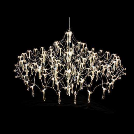 Люстра Emilia подвесная D73 золото Дизайнерская люстра Emilia сразу рождает ассоциации с королевской роскошью. Обилие сверкающих подвесок из стекла или хрусталя создает ощущение праздника. Замысловатые переплетения изогнутых элементов каркаса смотрятся одновременно просто и необычно. Повторяя традиционный дизайн классических люстр, подвесной светильник выглядит воздушным, легким за счет использования тонких прутков нержавеющей стали. Модель гармонично смотрится в классическом, неоклассическом и современном интерьере.Цоколь:LEDЦветовая температура:3000КДиммирование:нетКоличество светодиодов:57Световой поток, lm:3420Мощность, вт:28Степень защиты:IP20Крепление:Потолочная площадка; Цанговый подвесДлина тросов:150 см