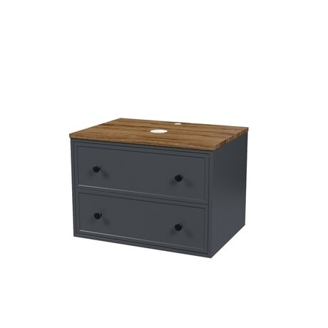 Компактная подвесная тумба Torr трендового темно-серого цвета со столешницей из МДФ в оттенке ореха макадамия. Сочетает в себе узнаваемый стиль и практичность популярного скандинавского дизайна. Ее четкие формы, теплый цвет дерева, фасады с декоративной филенкой, круглые ручки смотрятся гармонично и впишутся в любой современный интерьер. Подойдет любой накладной умывальник, покупается отдельно.