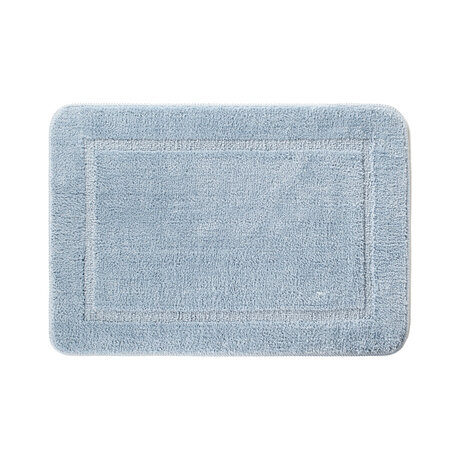 Мягкий коврик для ванной нежного голубого цвета с плотным невысоким ворсом (1 см), очень приятный на ощупь. Ворс из микрофибры отлично держит форму, легко чистится и быстро сохнет. Коврик подойдет для ванной и туалета.