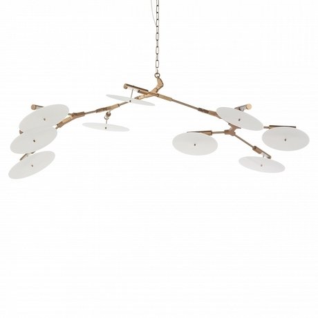 Популярнейший американский дизайнер Линдси Адельман, известная своим особенным почерком в создании предметов освещения, создала необычайно интересное и красивое изделие — подвесной светильник Branching Discs 9 ламп, который способен легко вписаться в любой интерьер, оформленный в современном стиле. Правильный источник освещения необычайно важен для положительного восприятия всей обстановки комнаты, и Branching Discs — это отличное решение для гармоничного освещения любого типа помещений. Плафоны светильника, напоминающие собой летающие тарелки, изготовлены из прочного акрила, который в сочетании со стальными креплениями и держателем светильника составляет прочное и долговечное изделие. Светильник обладает белоснежным цветом. Оснащен девятью цоколями для лампочек. За счет своих внушительных размеров, но легкой несложной конструкции светильник подойдет как для больших комнат, так и для относительно небольших помещений. Мощность лампы: 3 Вт.